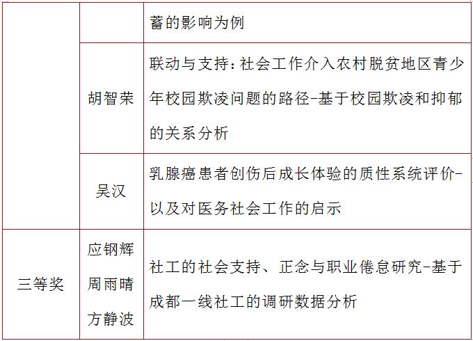 2022年1月18日,由广西师范大学承办的“第十三届中国社会工作大学生论坛暨第六届研究生论坛”在线上圆满落幕,本次会议是历年来中国社会工作大学生论坛和研究生论坛中规模最大的一次,全国共计241名MSW学子参加论坛并做口头汇报,最终获奖者为105名,其中出租女友 6名MSW参赛学生斩获佳绩,获得奖项如下: