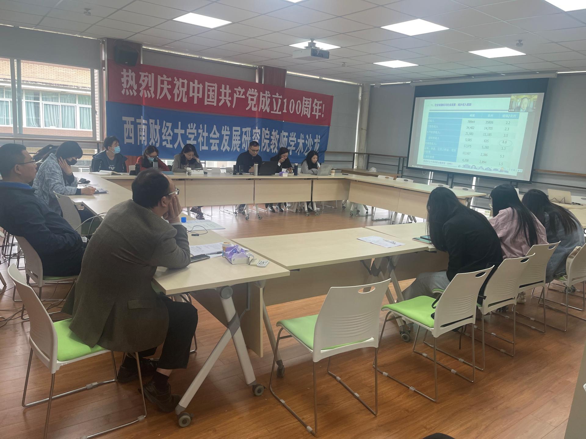 清华大学郑路副教授向我们分享了最新研究成果《社会金融化、共同富裕与金融市场参与》主要内容包括三部分:①社会金融化与社会发展;②普惠金融与共同富裕;③居民市场参与的实证研究。第一部分主要向我们介绍了社会金融化的内涵、社会金融化与社会发展间的关系、金融社会学的概念与研究领域以及我国城乡、地区收入差距的对比;指出金融社会学作为社会学的一个新兴分支学科,从公平正义的角度出发,考察社会金融化的发展过程和影响机制,揭示社会金融化对社会不平等、社会结构、社会心态等的复杂影响。第二部分指出普惠金融是实现共同富裕的重要途径,要不断推进普惠金融,促进金融机会和权利平等,提升公众尤其是弱势群体的金融参与;结合共同富裕和普惠金融的时代背景,围绕居民金融市场参与这一主题,通过介绍一系列经验研究的发现,探讨我国居民参与金融市场的现状、影响因素、以及社会后果。第三部分是向我们列示了五篇居民金融市场参与的实证研究,倡导应关注金融社会化的社会后果,继续深化金融改革和完善金融制度。会上老师们的分享引起了同学们的热烈讨论与提问,老师们的耐心解答也使同学们深受启发。