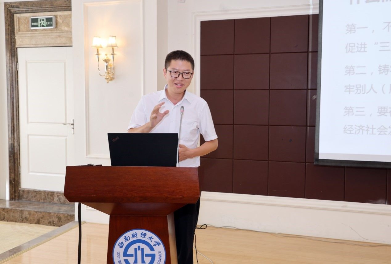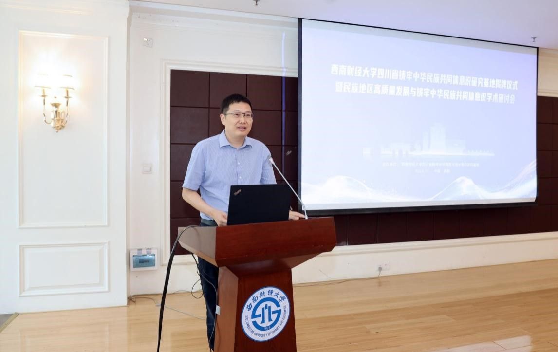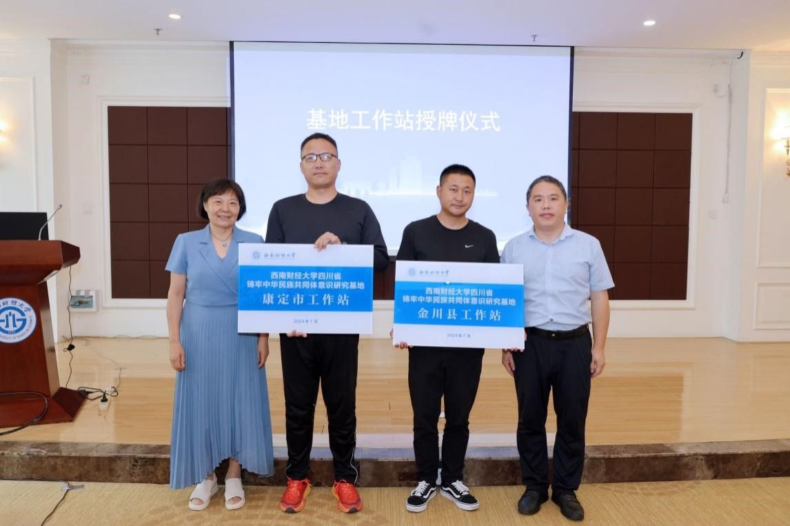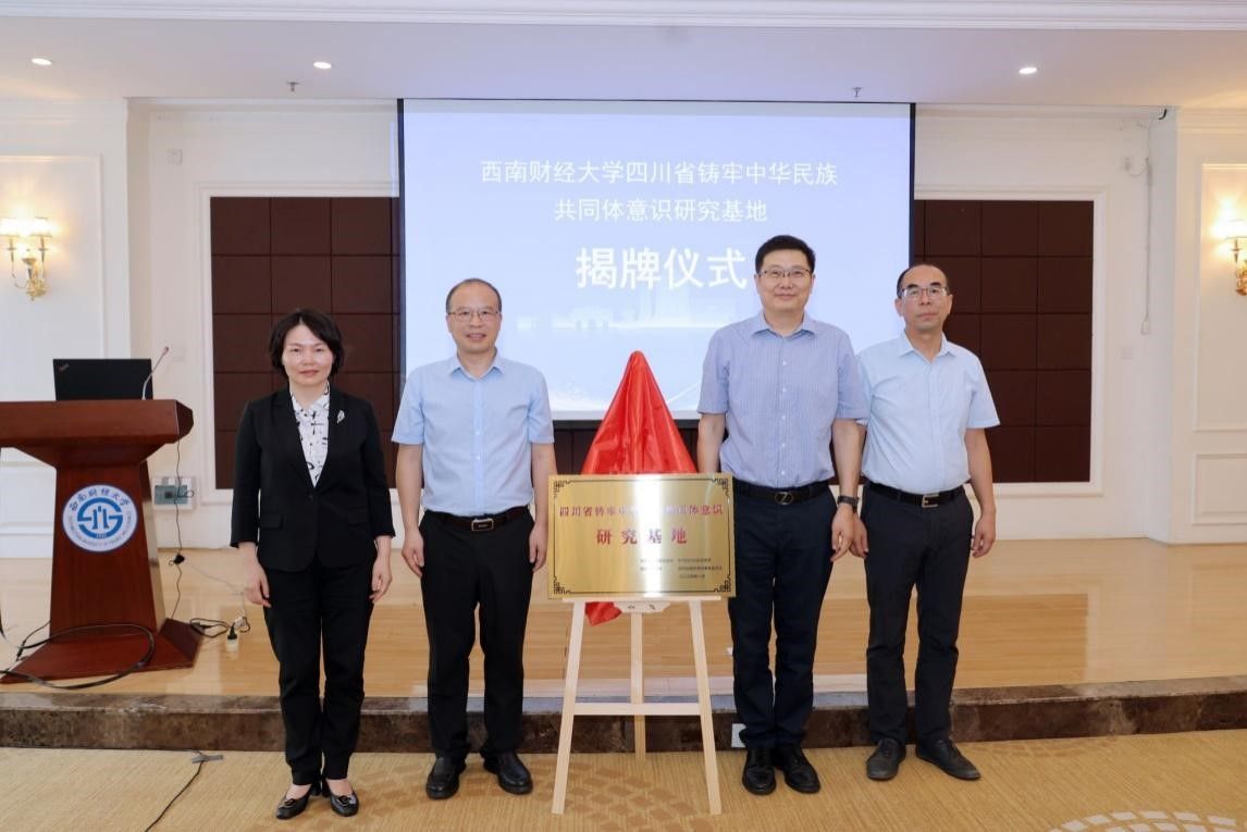 四川省铸牢中华民族共同体意识研究基地揭牌仪式暨民族地区高质量发展与铸牢中华民族共同体意识学术研讨会在光华校区举行。四川省民族宗教事务委员会副主任刘向鸿、省委宣传部二级巡视员张靖、省民族宗教事务委员会协调推进处处长刘劲松、省委统战部民宗处处长刘杰、省教育厅宣传思想与统战工作处处长李大鹏、康定市委统战部和金川县民族宗教局相关负责人,学校党委副书记、校长李永强,党委副书记谢红,党委常委、副校长桂富强,出租女友