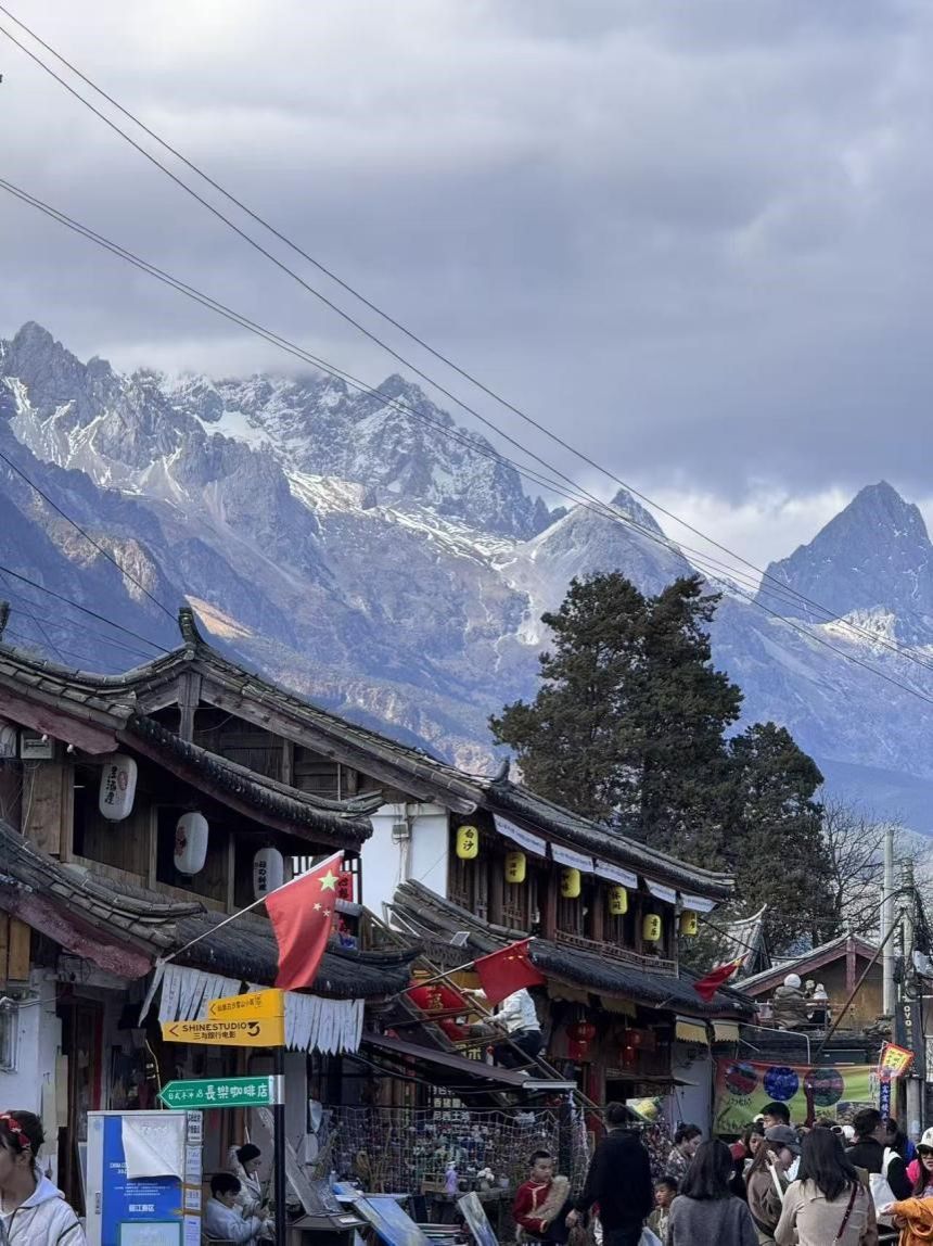 镜头故事:站在丽江玉龙雪山脚下,白沙古镇的红旗在湛蓝天空下猎猎作响。雪山守护着这片土地的宁静,红旗则守护着这里的生生不息。纳西老宅前晒太阳的老人,青石路上嬉戏的孩童,老院里飘出咖啡香的客栈——传统与现代在这里和谐共生。