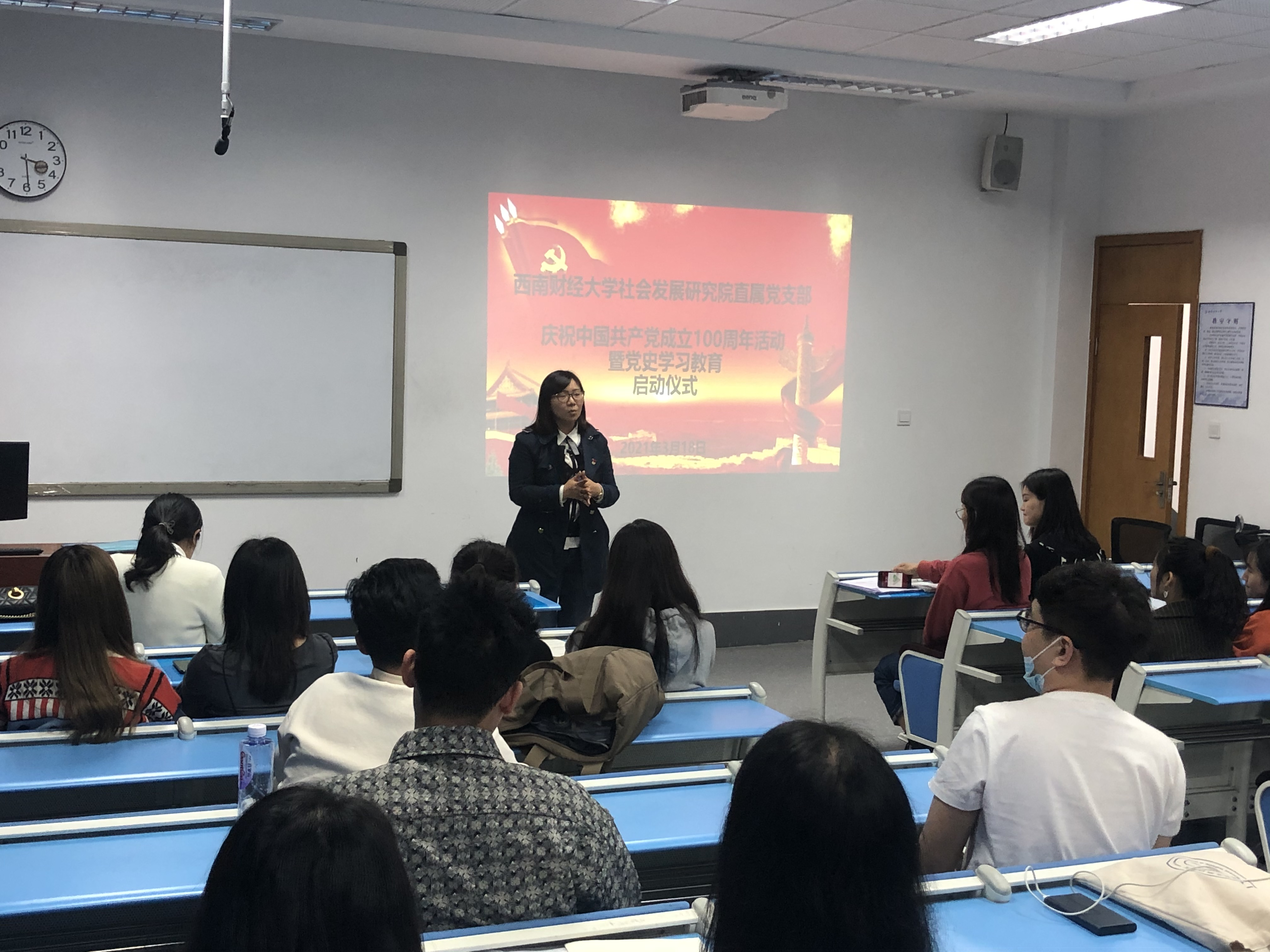 直属党支部分别在柳林校区、光华校区各召开一场党史学习教育动员会,会议由闫文静主持,全体学生党员参加。